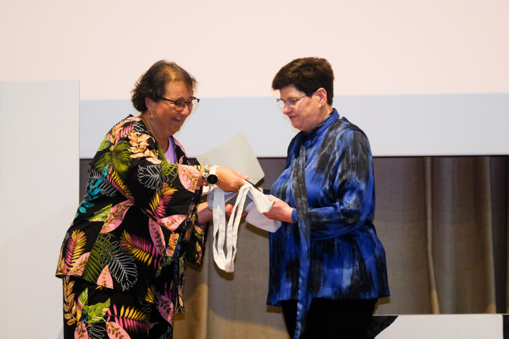 El bloque «Horizontes» miró al futuro con la bienvenida oficial a las nuevas colegiadas. En un gesto cargado de simbolismo, fue la propia María Jesús, la profesional homenajeada, quien entregó los kits de bienvenida a las nuevas voces de la profesión, simbolizando un relevo generacional vivo y necesario.
